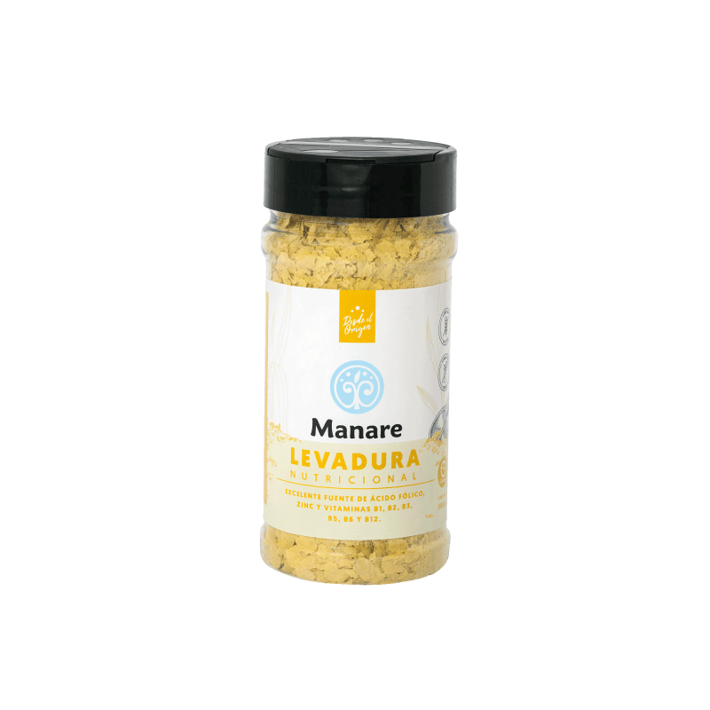 100 g de levadura nutricional orgánica Manare. Alimento alto en vitaminas del grupo B, en especial de vitamina B12. Su sabor es delicioso y similar a un queso.  Esta levadura nutricional...